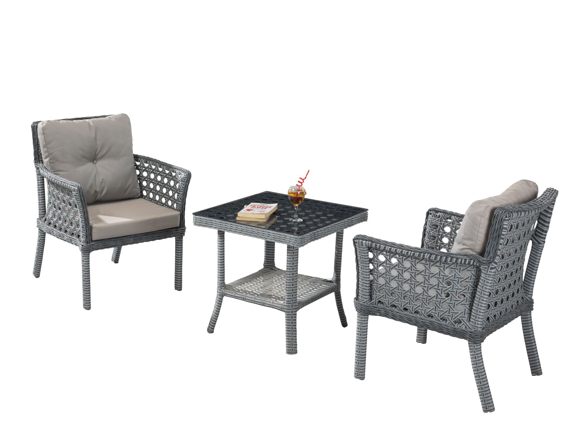 Set İçeriği: 2 Adet Geniş Koltuk + 1 Adet Camlı Sehpa.