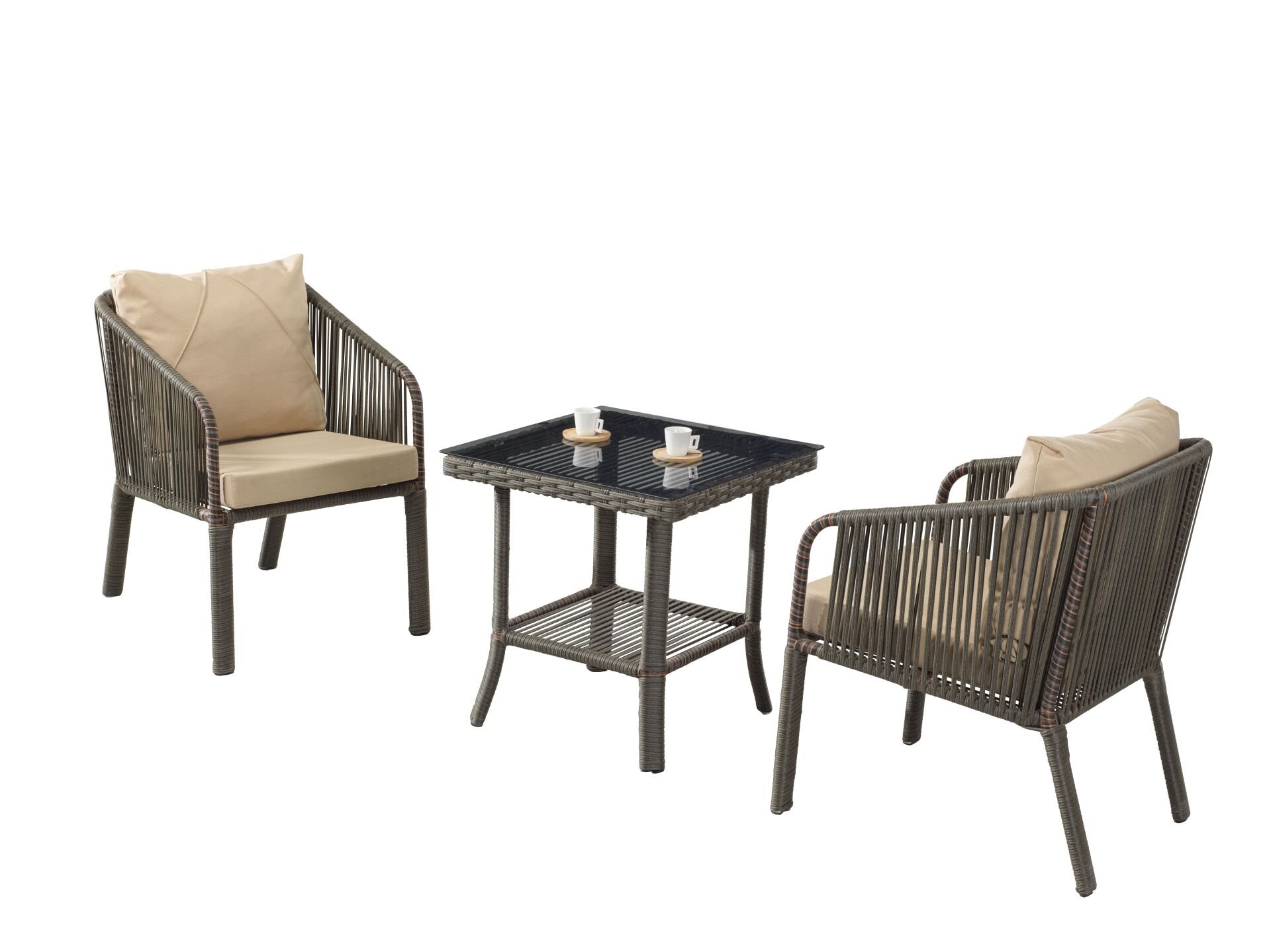 Set İçeriği: 2 Adet Geniş Koltuk + 1 Adet Camlı Sehpa.